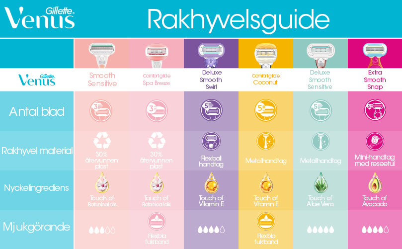 Ingen borde ha en åsikt om, hur eller varför du rakar dig. Gillette Venus tagit fram rakhyvlar och blad för en mjuk rakning som passar alla konturer och behov. Läs mer om vilken rakhyvel som passar dig bäst, och köp din favorit idag!